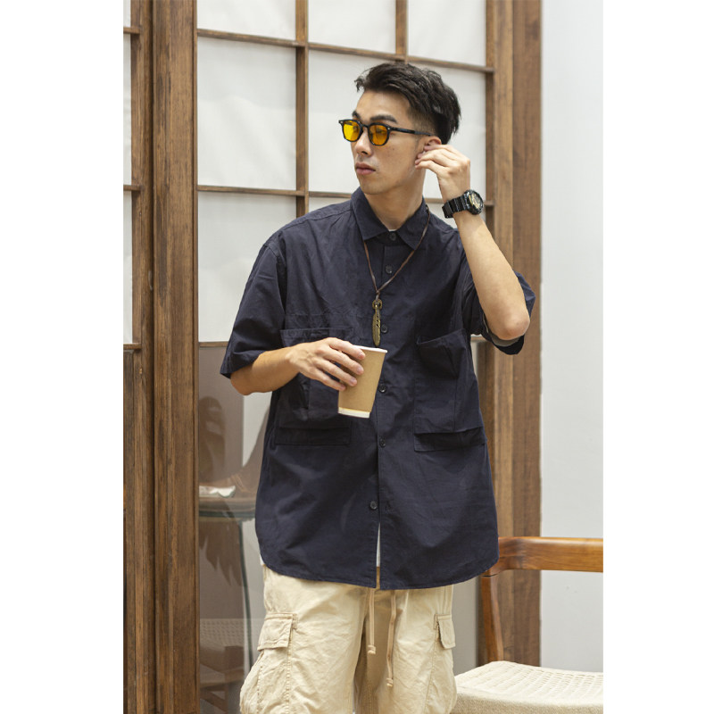 21SS日系复古口袋工装短袖衬衫kapital平替情侣休闲宽松衬衣男潮热门设计联盟服务商