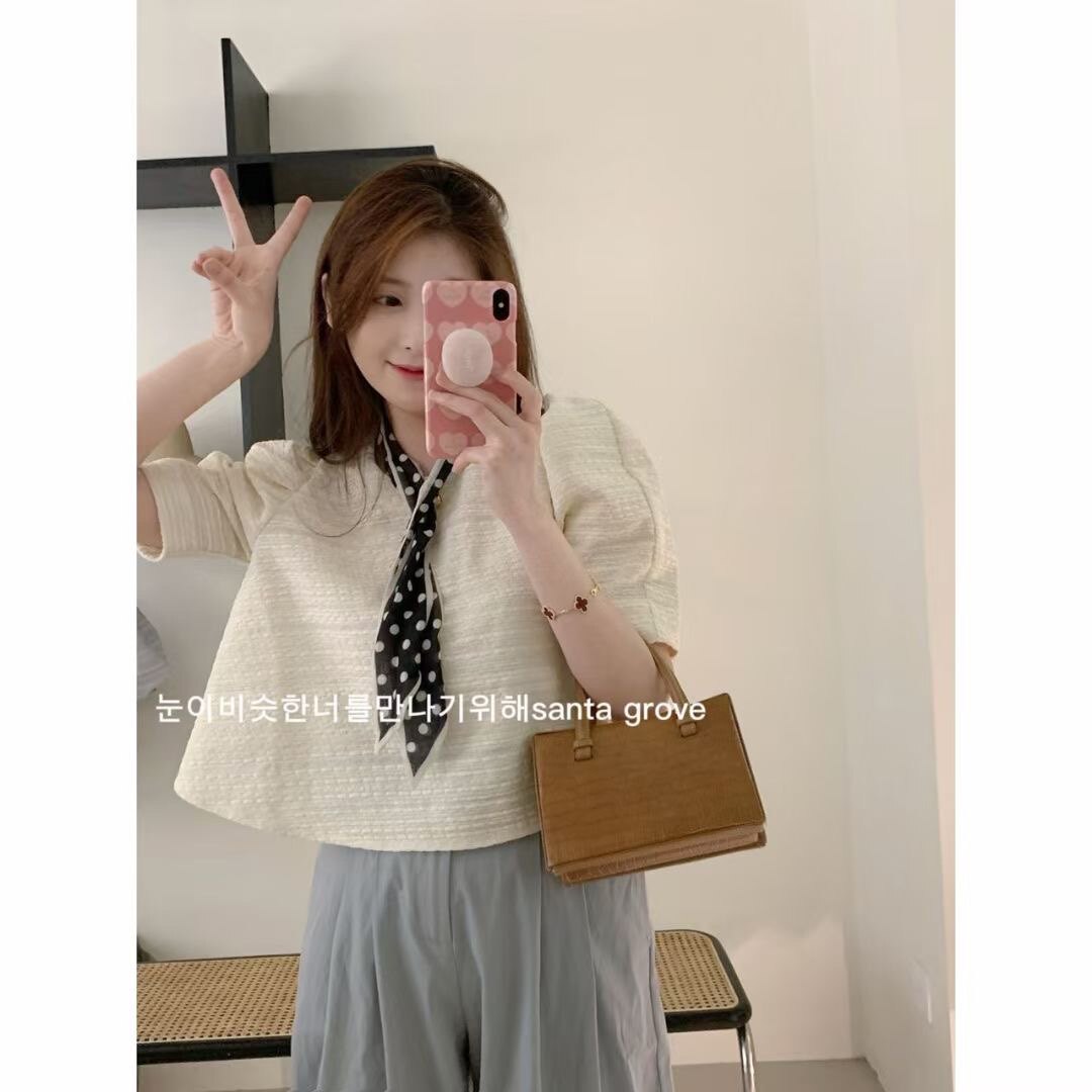 现货秒发 草莓家韩国东大门夏设计感小众甜美圆领泡泡袖短款上衣热门设计联盟服务商