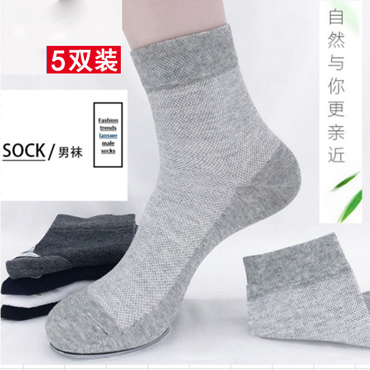 款5双夏季男士中筒袜网眼袜子纯色休闲纯棉透气吸汗运动商务袜热门设计联盟服务商