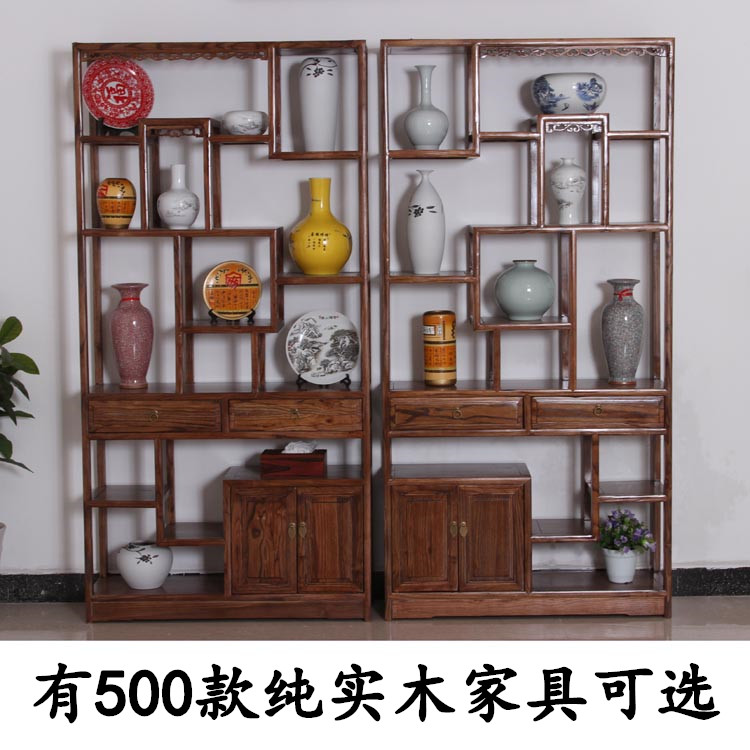 实木博古架隔断古玩古董架多宝阁货架陈列展示柜榆木中式仿古家具热门设计联盟服务商