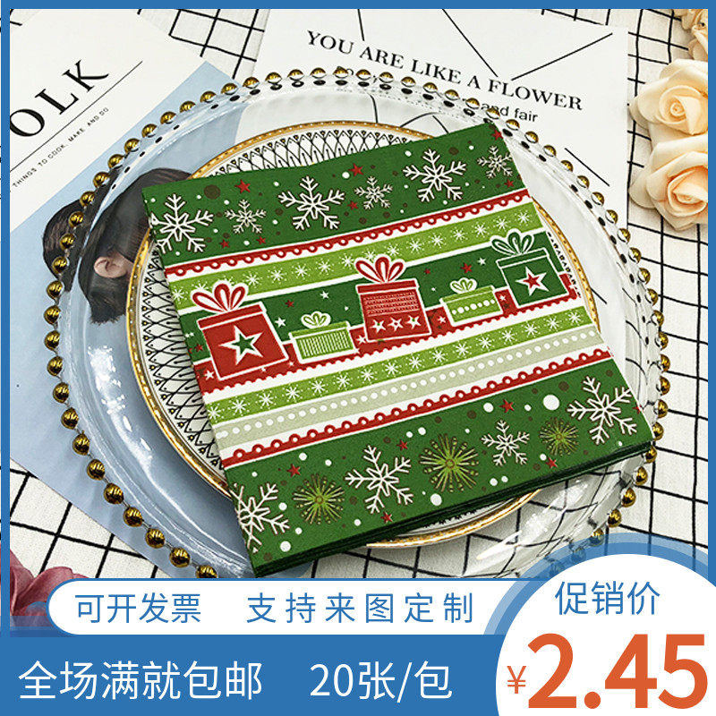 厂家直销 圣诞彩色印花餐巾纸 纸巾餐饮 节日折叠面巾纸热门设计联盟服务商