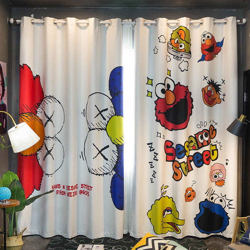 定制长帘粗麻芝麻街潮牌动画儿童房卧室客厅挂钩全遮光打孔窗帘布热门设计联盟服务商