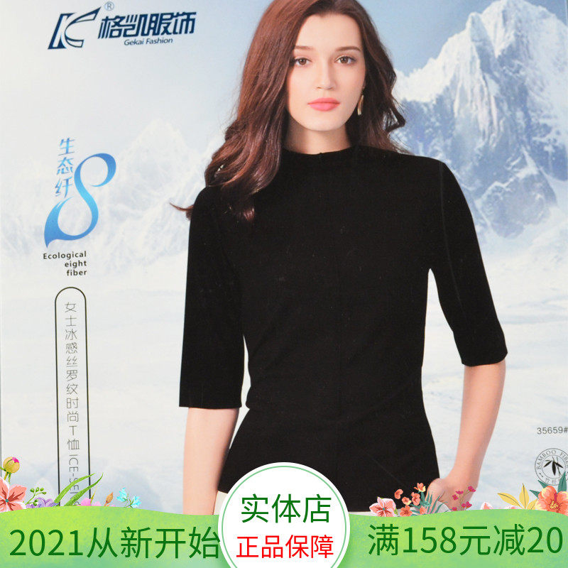 新品格凯服饰35659款春秋薄款打底冰感丝中领女短袖热门设计联盟服务商